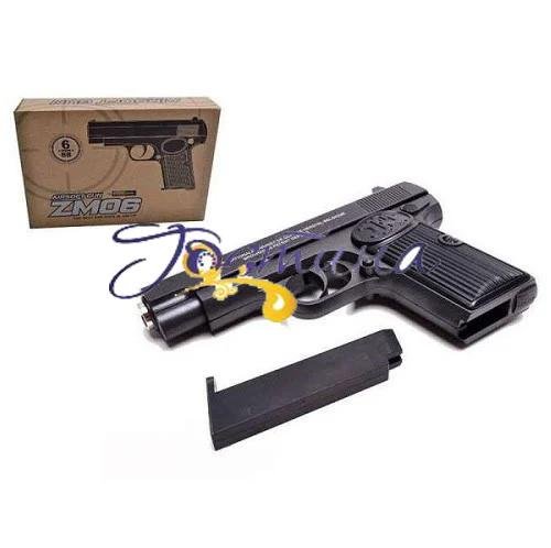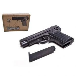 Дитячий пістолет ZM06 - це іграшкова зброя для хлопчиків віком від 5-6 років, стріляє пластиковими кульками (магазин і пакет кульок входить в комплект з пістолетом). Пістолет виглядає дуже реалістично, його розмір як у справжньої зброї. Ще один плюс зброї ZM06 - це матеріал його виготовлення, а саме міцний метал. Упакований дитячий пістолет ZM06 в короба з картону і пінопласту.