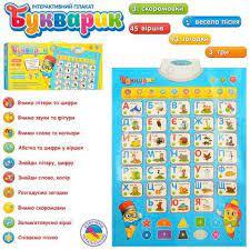 Плакат 7031 UA 45-62 навч., літери, цифри, кольори, скоромовки, муз. (укр.), бат., кор., 47-22-3 см.
