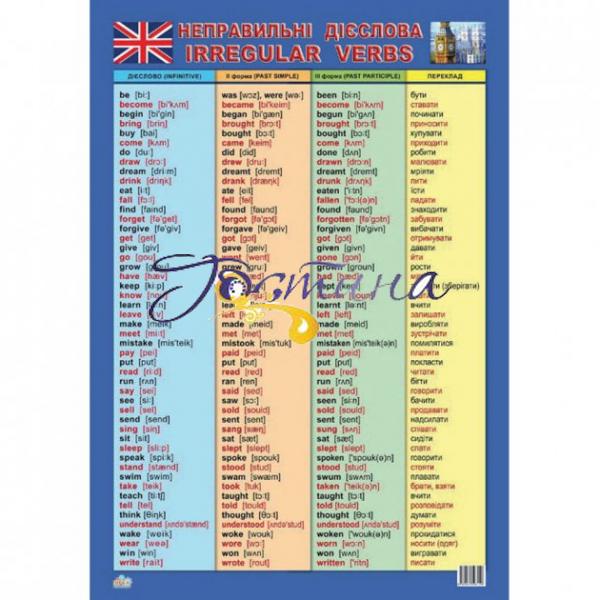 Плакат Таблиця неправильних дієслів (англійська мова)