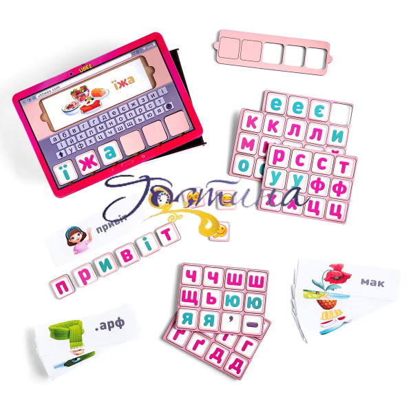 Планшет для дівчаток "Збери слово за малюнком" українською мовою (Дерев'яні пазли, розвиваючі ігри для дітей) ПСД199-УКР
