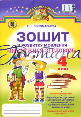 Зошит з розвитку мовлення Подружися зі словом призначено для роботи на уроках розвитку зв’язного мовлення. Уміщенні в ньому завдання сприятимуть формуванню в учнів умінь створювати діалог, складати план тексту, будувати і записувати розповідь, опис, міркування, переказ тексту та інші види зв’язних висловлювань. Казкові герої Знайко та Чомучка допоможуть створити на уроках ігрову атмосферу, а умовні позначення – швидко зорієнтуватися у способі виконання завдань.