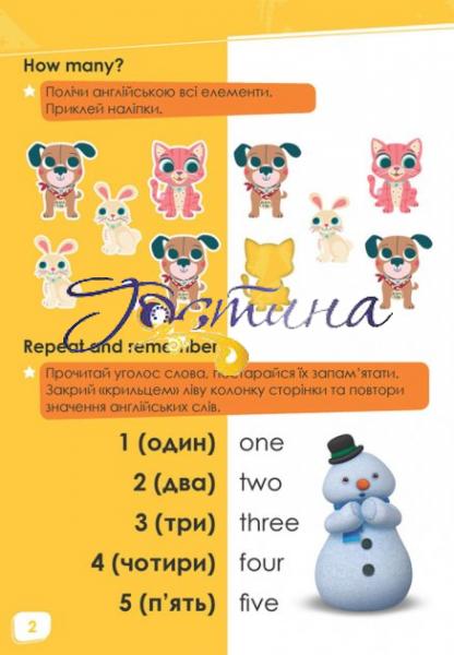 Ці цікаві веселі книжки допоможуть дошкільняті разом з героями популярних мультфільмів опанувати найпростіші навички спілкування англійською, покладуть початок формування лексичного запасу. 16 сторінок цікавих вправ та 2 сторінки цікавих наліпок допоможуть розвинути увагу, логіку та кмітливість.