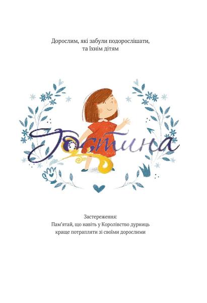 Одного дня розважлива й кмітлива Полінка, вона ж Велика Мандрівниця маленького розміру, вирішила зазирнути за двері, на яких було написано «Куди не треба», — і потрапила до казкового королівства, жителі якого щодня коять бодай одненьку нісенітницю, яку потім нестримно святкують. Чи може бути щось цікавіше й несподіваніше? Якщо ви розгорнете цю книжку — миттєво потрапите у пригоду, під час якої доведеться вислухати силу-силенну дурниць, впоратись із величезним тортом, познайомитись із королевою Нісенітницею та її почтом, а тоді нарешті знайти шлях «куди треба», тобто додому. Захоплива, кумедна книжечка для дітей, герої якої батькам видадуться не такими вже й вигаданими.