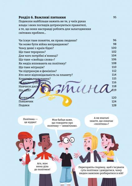 Книжка «Політика для початківців» у зрозумілій формі розкаже юним читачам про правління у країні, політичну систему, ідеології та ще багато цікавого. Зміни в нашій державі викликають чимало запитань у найменших. «Політика для початківців» стане справжнім інформаційним довідником, який допоможе батькам пояснити дитині про такі непрості речі як: права людини, свободу слова, фемінізм, вибори та голосування. «Більшість батьків вважають тему політики досить складною для розуміння дитини. А коли дитина підростає, то не розуміє базових речей, які відбуваються у її країні. «Політика для початківців» допоможе відкрити дітям ці важкі, на перший погляд, визначення і терміни. Це посприяє поколінню обізнаної молоді, яка матиме повне розуміння того, у якій країні вона б хотіла жити та які кроки для цього має зробити», – розповідає Світлана Павелецька, співзасновниця видавництва #книголав. Окрім пояснень та цікавих діалогів у книжці, «Політика для початківців» має окремий словник із найпоширенішими визначеннями. Книжка прийде в нагоді не лише для дітей, але і для дорослих.