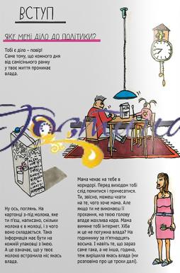 Може влаштуємо революцію? Маленьку? Ну ні, то ні! Але ж правда цікаво як це працює? Вам від 9 до 113 років – тоді для вас нема складних тем! Отже: політика! Навіщо ця справа дітям, адже стереотип, який засів у нашому мозку вбачає у ній лише брудну справу, яку подекуди вершать наші управлінці. Проте, ця книга має бути прочитана кожним маленьким громадянином, розвіяти міфи та увести у таємничий світ політики. В цій книзі ви не знайдете сухих нецікавостей про політику. Завдяки свіжим, живим прикладам, гумору, сміливим яскравим ілюстраціям автор пояснює суть політики та відображає механізми, які керують політикою. Питання, які ставляться дуже часто, а у книзі відшукаєте відповіді: Чи влада тільки державна? Вона є кругом, навіть, коли батьки збирають до школи зранку своїх дітей! Чи є демократія найкращим способом управління? Для чого потрібно держава? Звідки держава отримує гроші? Що захищає Конституція і чому вона настільки важлива? Хочете влаштувати демонстрацію? Можна організувати.