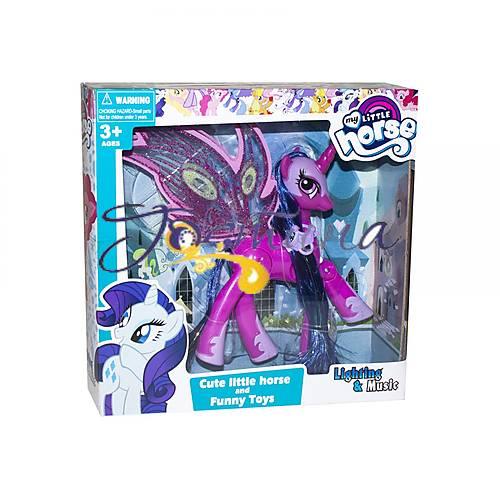 Поні музичний "Me Little Pony". Пластикова конячка з пишною гривою і яскравими крильцями. Світиться яскравими квітами, співає пісеньку з мультфільму англійською мовою.