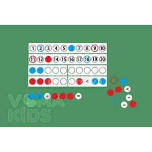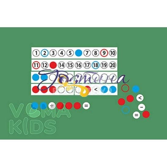 В набір входять магнітні числові смуги, кільця та кружки двох кольорів. Направлений на вивчення лічби - кількісної та порядкової.