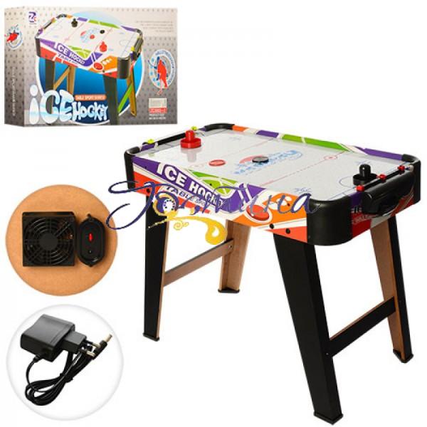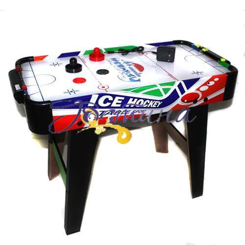 Вирішили купити аерохокей? Ми пропонуємо відмінну модель ігрового столу Аерохокей Bright ice! Цей невеликий ігровий стіл подарує багато веселих і незабутніх хвилин дітям і дорослим! Аерохокей Bright ice легко збирається, його можна використовувати і без ніжок, як настільну гру. Аерохокей - рухлива і дуже захоплююча гра! Гра піднімає настрій. Розвиває уважність і реакцію.  У комплекті: • 2 біти, 2 шайби • Вентилятор • Блок живлення  Вентилятор подає повітря через спеціальні дірочки в ігровому полі. Наявність механізму подачі повітря, зменшує тертя шайби і збільшує швидкість гри.  Характеристики аерохоккея Bright ice: Матеріал: корпус і ніжки столу - дерев'яні матеріали (МДФ),ігрове поле - зміцнений пластик.  Розмір ігрового поля: 70 (д) Х38 (ш) х50 (в) см. Розмір упаковки: 74х38х15 см. Вага 5кг.