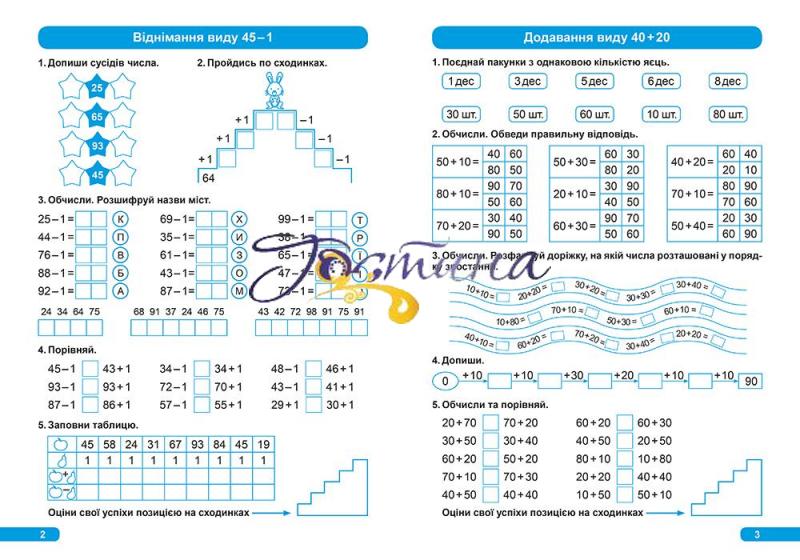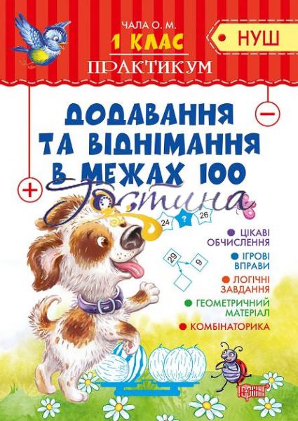 Цей посібник містить приклади з додавання та віднімання у межах 100 за програмою Нової української школи для першого класу. Тренажер допоможе вашій дитині удосконалювати навички з розв'язування різноманітних прикладів та завдань, а батькам книжка стане у нагоді, якщо ви захочете оцінити навчальні досягнення своєї дитини