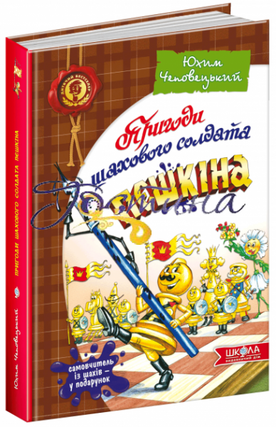На сторінках цієї книги юні читачі познайомляться з Кольком Пижиковим та його товаришем Петрусем Півничуком — завзятими гравцями в шахи — і всі разом спостерігатимуть за цікавим шаховим світом, у якому спалахують війни між двома ворожими арміями. У цьому світі є веселий чижик Пижик, що ніяк не навчиться літати, щебетуха Маша-Ромаша, хитрющий кіт Васько й підступний крутій павук Лапоніг. Та головним героєм подій виступає "геть оббритий, в атаках битий, перемогами знаменитий" шаховий солдат на прізвище Пєшкін.