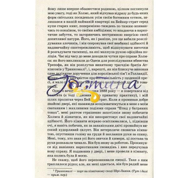Пропонована книга — збірка захоплюючих оповідань класика англійської літератури Артура Конана Дойла (1859—1930) про всесвітньо відомого детектива Шерлока Холмса. Це розповідь про людину, котра¬ бачить і чує все те саме, що й інші, але помічає значно більше і робить висновки, які рятують людям життя, відновлюють справедливість, а то й просто вирішують суперечки. Якою б дивною не видавалася ситуація, для Шерлока Холмса вона завжди¬ має логічне пояснення, тому він сміливо береться за найскладніші справи й успішно вирішує їх.