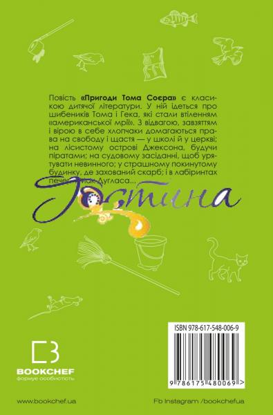 «Пригоди Тома Сойєра» — захоплива та дотепна пригодницька книжка, що здатна закохати в читання навіть найнепосидючіших. Вона розповідає про дружбу, відповідальність і навіть про перше кохання, нехай по-юнацькому наївне та кумедне, але від того не менш важливе та цікаве.