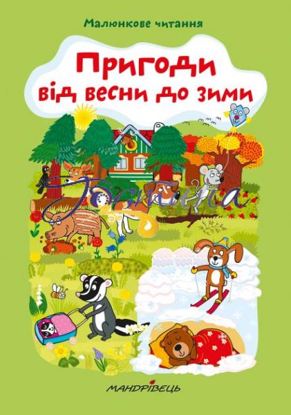 "Пригоди від весни до зими" – це книжечка, що входить у серію "Малюнкове читання". У ній містяться цікаві тексти для читання та яскраві малюнки. Деякі слова замінені на маленькі зображення, що полегшує читання та розвиває логічне мислення і творчу уяву.