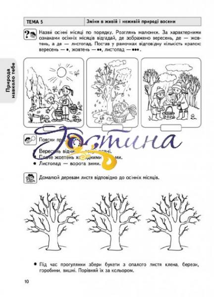 Зошит укладено за чинними програмами розвитку, навчання і виховання дітей старшого дошкільного віку. Зміст завдань узгоджено з Базовим компонентом дошкільної освіти (редакція 2012 р.). Кожну тему викладено з урахуванням принципу інтеграції, тобто до зайняти з природознавства включено матеріал з розвитку мовлення, логіки, підготовки руки до письма тощо, та призначено для роботи на заняттях з ознайомлення з навколишнім світом. Крім цього, враховано й інші принципи організації розвивально-пізнавальної діяльності: змістова цілісність матеріалу, його доступність, системність, науковість, послідовність. Матеріал зошита охоплює чотири тематичні напрями: «Природа навколо тебе», «Світ неживої природи», «Світ живої природи», «Всесвіт. Природа космосу». На звороті обкладинки вміщено кольорові малюнки деяких об'єктів природи, що допоможе дітям під час виконання певних завдань.