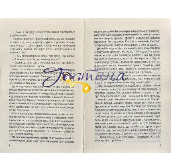 Дон Тіллман — молодий успішний учений-генетик — має серйозні проблеми у спілкуванні з жінками, бо зазвичай для нього перше побачення є й останнім. Тож він застосовує науковий метод пошуку супутниці життя. Його проект «Дружина» із найдетальнішою анкетою має відсіяти непунктуальних, любительок гороскопів, ворожок, схиблених на одязі модниць, релігійних фанатичок, веганок, спортивних уболівальниць, неосвічених і тих, що курять. Та от у його житті випадково з’являється Розі. Вона геть не відповідає вимогам і до того ж більше цікавиться власним проектом — пошуком свого біологічного батька. Але… Дону доведеться визнати — кохання творить дива.