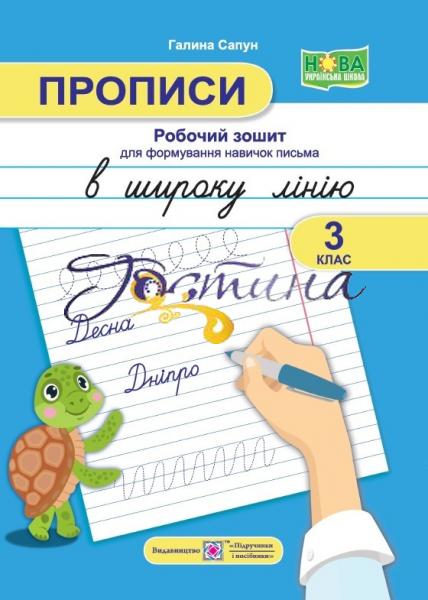 Посібник містить систему вправ для формування навичок письма в зошитах у широку лінію. Для учнів 3 класу, учителів початкових класів.