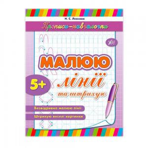 Ці прописи допоможуть малюку підготувати руку до письма. У цьому зошиті дитина малюватиме горизонтальні та вертикальні лінії, а також заштриховуватиме форми різними способами.