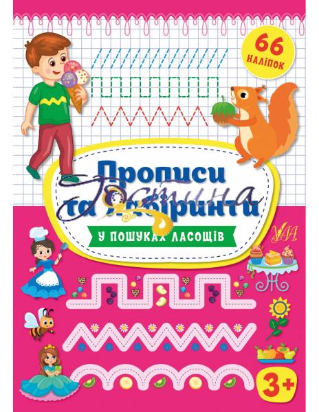 Це видання містить прості прописи по клітинках та лабіринті для найменших, розділені між собою для зручності роботи. У верхній частині тетради малюкам потрібно навести лінії по пунктиру, а в нижній — пройти нескладні лабіринти, які відповідають світогляду малюків: допомогти тваринкам і дітям знайти їх улюблені ласощі, з'єднати овочі та фрукти з їх половинками тощо. Під час виконання завдань дітям пригодяться яскраві наліпки, а оцінити свою роботу можна спеціальними наліпками-оцінками. Працюючи з виданням, малюк розвине дрібну моторику пальців рук, просторове мислення, уміння орієнтуватися на аркуші паперу, а також підготує руку до письма.