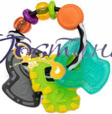 Цей перший брелок для дитини ультралегкий і простий для гри. Деталі для прорізування зубів (м'які та жорсткі) є оптимальними для масажу ясен під час прорізування зубів. На навісних елементах зображені цифри.
