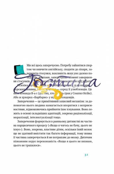 Тематика Психологія, ментальне здоров'я, гештальт-терапія. Про книжку «Мені все одно, як він і з ким тепер зустрічається!» А насправді тихцем перевіряєш його соцмережі. Привіт, заперечення! «Чоловіки не плачуть», — каже тато синові. Колись йому це повторював його ж батько. Інтроєкціє, це ти? «Колега пише без смайликів у робочому чаті. Точно злиться за щось на мене!» Здається, в чат увійшла проєкція. У цій книжці ви познайомитеся з багатьма способами, якими ми «захищаємося» від обставин, — запереченням, проєкцією, ідеалізацією, відстороненням, контролем тощо. Вони допоможуть ще краще зрозуміти себе і свою поведінку: приміром, як ми реагуємо на втрати, переживаємо через виступ, даємо раду образам чи вибудовуємо межі. Тема складна, але Марк з Іллею подають основні ідеї простою мовою, звертаються до світил від Фройда до Голліса, ілюструють теми історіями із життя і сучасними прикладами. Також до кожного розділу вони додають вправи для пропрацювання й назви фільмів і книжок, що допомагають глибше зрозуміти тему. Для кого ця книжка Для широкого кола читачів, які мають жагу пізнавати самих себе. А також для тих, хто хоче зрозуміти, як працюють захисні механізми психіки та як реагувати на власні дії у певних життєвих обставинах. Чому ця книжка «Простими словами. Як розібратися у своїх емоціях» стала абсолютним бестселером Нашого Формату. Загальний наклад книги перевищив 16000 екземплярів. У другій частині «Простими словами. Як розібратися у своїй поведінці» Марк Лівін та Ілля Полудьонний розбирають способи адаптації людини до різних ситуацій. Книга допоможе зрозуміти себе та інших. Читати її можна без прив'язки до першої. Але в парі вони, звісно, працюють краще. Про авторів Марк Лівін — журналіст і письменник, викладач сторітелінгу. Видавець The Village Україна та Inspired. Спікер конференції TEDx. Співавтор популярного українського подкасту про психологію «Простими словами». Ілля Полудьонний — психолог, гештальт-терапевт, співзасновник сервісу онлайн-психотерапії TreatField.com. Співавтор популярного українського подкасту про психологію «Простими словами». Відгук про книжку А як ви «захищаєтеся від життя»? Заперечуєте, ігноруєте чи, може, намагаєтесь усе пояснити? Щоб зрозуміти себе, варто розібратися із захисними механізмами психіки, які пояснюють ту чи іншу людську поведінку. Чудово, коли хтось розповідає про це простими словами. Андрій Баштовий, головний редактор The Village Україна Цитати з книжки Проєктуючи, людина накладає обмеження на ситуацію чи людину, виходячи з внутрішньої картинки світу. Але без цього механізму ми не зможемо як слід навчатися, спілкуватися, взаємодіяти. Ми вже колись жартували, що наша психіка – це закрита вечірка для одного, ми не можемо проникнути в голову іншої людини, але на основі власного досвіду ми можемо уявити, як людина переживає горе та втрату, як почувається, коли її покинули, завдяки їй ми можемо плакати та сміятися поруч з іншими.