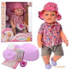 Іграшковий пупс стане улюбленою іграшкою вашої дівчинки! Пупс виглядає як справжній немовля, смокче соску, п'є з пляшки, їсть кашу, ходить на горщик. Гра з ляльками розвиває фантазію маленької дівчинки і найкраще готує її до ролі майбутньої мами. - має рухливі ніжки і ручки; - може голосно плакати, пускаючи при цьому сльози; - п'є воду з пляшки; - після рясного пиття, лялька, за бажанням господині, пісяє в горщик або в підгузник. У комплект входять: соска, пляшечка для годування, ложка, мисочка, каша 4шт, підгузник і горщик.