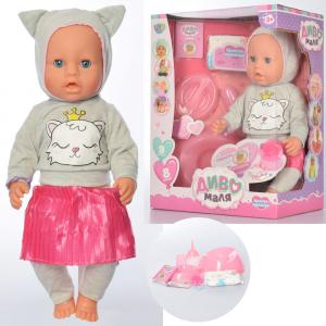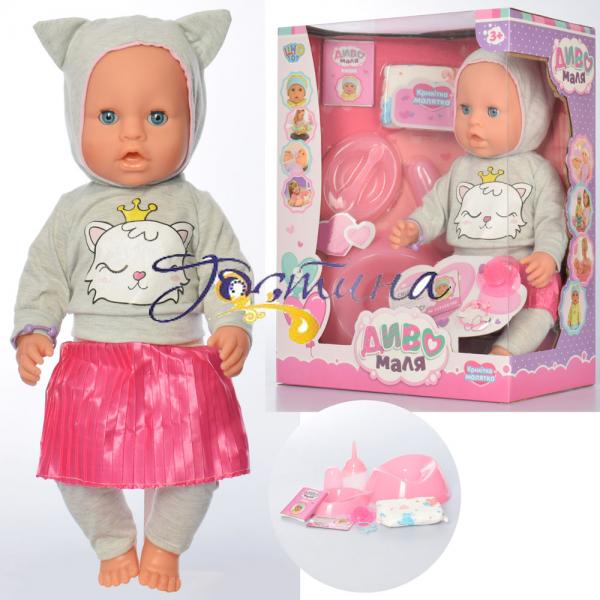Пупс Диво-маля п'є-пісяє, є горщик, пляшечка, каша, соска, посуд.