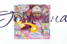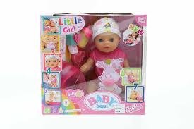 Миле малятко вміє пити молочко з пляшечки, мочити пелюшку, може плакати справжніми сльозами, заплющує очі, до того ж з нею можна купатися. Відомі функції запускаються набагато простіше, ніж раніше. Замість лівої руки, натисніть на м'які груди Baby Born і вона заплаче. Натисніть на м'який животик, щоб малятко сходила на горщик. Ручки і ніжки рухливі, тому лялечку легко роздягати, одягати і переодягати. Дівчинка одягнена в рожевий комбінезончик і шапочку. Не потребує батарейок. Рекомендовано для дітей від 2 років.