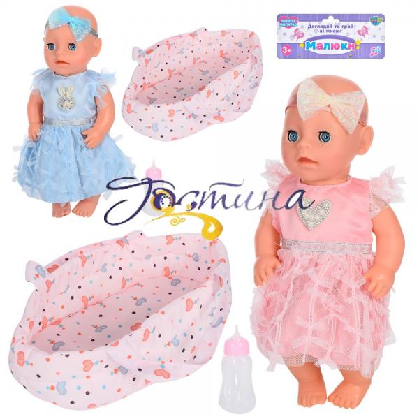 Пупс YL1854K-A-H 31см, пляшечка, люлька-перенесення, п'є-писає. 2 види, в кульку. Матеріал: пластмаса + тканина.