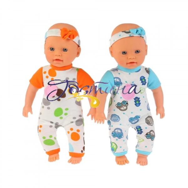 Пупс зі звуком "Моя маленька дитина" Defa чарівне немовля з м'яко-набивним тулубом і рухливими кінцівками. Одягнений у милий комбінезон із короткими рукавами та головну пов'язку з бантиком. Завдяки вбудованому аудіо блоку пупс Дефа може видавати різні дитячі звуки. Іграшка представлена в асортименті (чотири варіанти). Для роботи звукових ефектів потрібні батарейки LR44