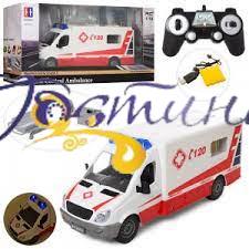 Це точна копія реальної швидкої допомоги в масштабі 1 : 18 Дана швидка допомога може рухатися в напрямку вперед/назад, вправо/вліво. Видає реалістичні звукові та світлові ефекти. Перевагою радіокерованих моделей є стимулювання розвитку у дитини дрібної моторики, логіки, координації руху і просторового мислення. Характеристики - Дистанційне керування 2.4 GHz - Максимальна швидкість - 4 км/ч - Поворот коліс - Реалістичні світлові і звукові ефекти - Тип живлення - акумуляторна батарея - Ємність акумулятора - 300 mAh - Вік - 3+ - Дальність управління - до 20 м