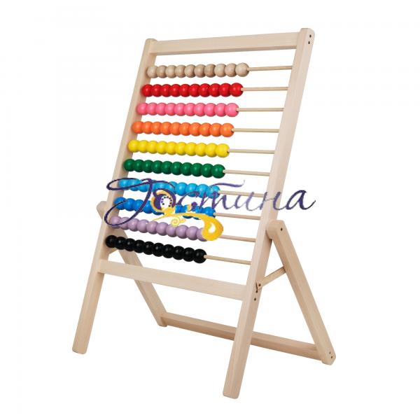 Рахівничка Максі – яскрава, розвиваюча, цікава рахівничка, що дивує своїм розміром, стане незамінною в концепції НУШ, дитячих розвиваючих центрах та дошкільних закладах. Така іграшка допоможе швидко навчитися рахувати до 100, вивчити кольори. Розмір кожної бусинки 4 см. Виготовлена з високоякісного масиву дерева твердої породи. Пофарбована якісними європейськими фарбами на водній основі. Розмір 680х40х1060мм. Якість перевірена двадцятирічним досвідом виробництва. Нашу рахівничку можна зустріти в багатьох дитячих закладах України в чудовому вигляді навіть після багаторічної експлуатації!