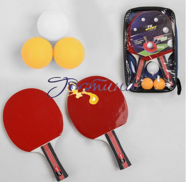 Ракетка C 44860 пінг-понгу (50) "TK Sport", 2 шт + 3 кульки, в чохлі