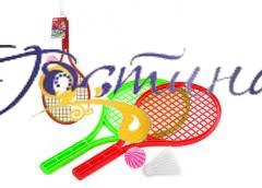 Ракетка дитяча 2 шт. Розмір 40 см. Воланчик, м'ячик 2 шт. 3 кольори. У сітці 18-40-4 см.