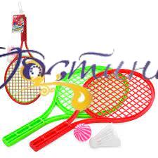 Ракетка детская 2 шт.Размер 39-18 см, мячик, воланчик.В сетке.39-18-6 см.