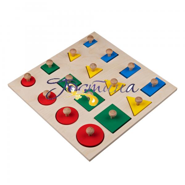 Іграшка - рамка вкладка «Монтесорі» розвиває велику моторику, координацію рухів, гнучкість кисті, окомір, посидючість, концентрацію уваги, тренує аналіз. Допомагає вивчати кольори і геометричні форми. Матеріал - дерево пофарбоване європейськими, яскравими фарбами на водній основі. Рамка великого розміру, фігури великі, мають ручки - власники.РОЗМІР: 33,5х33,5х3,5см.Зроблено в Україні. Надійна і міцна іграшка буде довгі роки служити дитині!Іграшка рекомендована для домашнього використання і просто необхідна в дошкільних установах. Розрахована на довгострокове використання, адже її якість перевірено майже двадцятирічним досвідом виробництва.