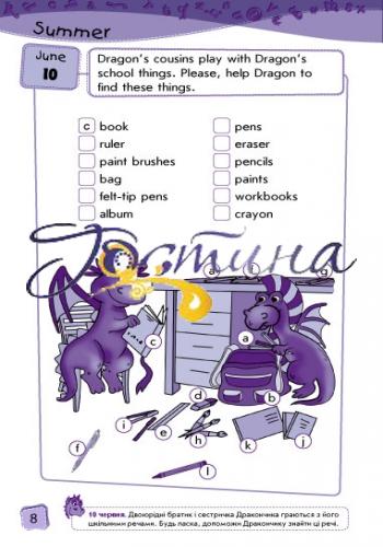 Посібник (fdnjh Куварзіна М. В.) призначений для занять молодших школярів англійською мовою під час літніх канікул. Виконання лише одного завдання з цієї книжки на день дозволить учням не переривати процес вивчення англійської, повторити протягом літа засвоєні лексичні й граматичні та тими бути підготовленими до продовження навчання. Завдяки ігровій формі вміщених завдань дітям буде легко й цікаво займатися за посібником. Матеріал видання відповідає чинній програмі з іноземних мов, затвердженій Міністерством освіти і науки України.Для учнів, що вивчають англійську мову протягом двох років, та їх батьків.
