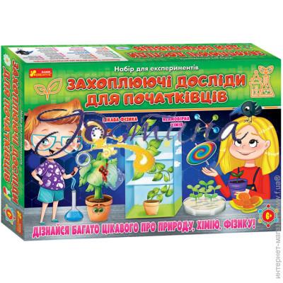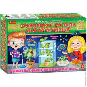 В оновленому дизайні! Упакування з 3D тисненням! Величезна коробка з науковими експериментами виконана у тематичному мультяшному стилі, який так гарантовано сподобається дітям! 24 досліди в 1 експериментальному наборі! З ним кожна дитина може стати справжнім юним дослідником! Розкриваємо малечі таємниці природи й дізнаємося багато нової та корисної інформації про рослини, повітря й воду. Завдяки набору "Захоплюючі досліди для початківців" виростимо справжній газон на столі, побачимо на власні очі, як "плаче"листочок, створимо живий лабіринт, танок зубочисток, перемістимо ціле яйце у пляшку та зробимо справжню хмаринку тощо. Пізнавальні та прості досліди для дослідників-аніматорів, відкриють шлях у світ цікавого та захоплюючого! Експерименти 100% безпечні: є захисні рукавички та окуляри. Набір містить все необхідне обладнання для проведення дослідів, є навіть справжнє збільшувальне скло для досліджень та чашка Петрі.