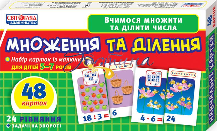 Вчимося множити і ділити числа. У наборі 48 карток з малюнками, з яких можна скласти рівняння 24.+ Завдання на звороті!
