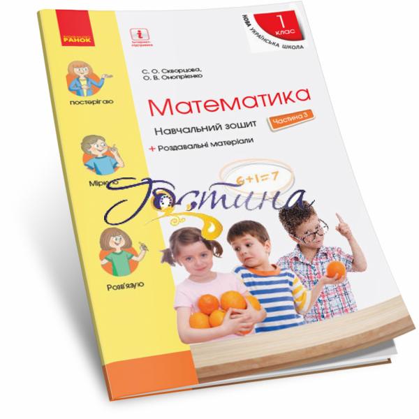 Посібник складений відповідно до Типової освітньої програми, розробленої під керівництвом О. Я. Савченко, і є складовою навчально-методичного комлексу з математики для 1 класу авторівС. О. Скворцової, О. В. Онопрієнко. До комплексу входять видання: навчальний зошит у 4 частинах, роздавальні матеріали, дидактичні матеріали для практичних робіт, розробки уроків.Навчальний зошит містить матеріали для третьої чверті навчання: тексти правил; зразки міркувань; завдання на актуалізацію опорних знань, створення проблемної ситуації та ї ї розв'язків язання, первинне закріплення, формування вмінь і навичок, неперервне повторення. Навчальний матеріал поданий у цікавій та доступній формі з урахуванням психологічних особливостей сучасних першокласників.Усередині посібника наведено роздавальні матеріали до деяких уроків, які можна відокремити від основного зошита.Роздавальні матеріали до всіх уроків доступні для завантаження на сайті interaсtive.ranok.com.ua.Призначено для учнів 1 класу закладів загальної середньої освіти, вчителів початкових класів.