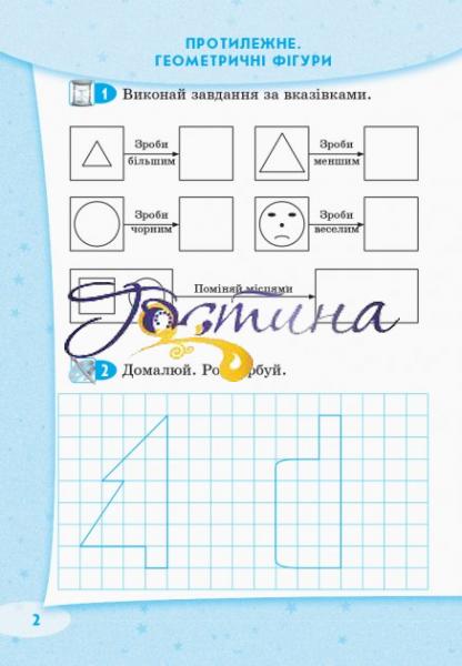 Посібник призначений для роботи з дітьми 5-7 років, які збираються йти до школи, та може використовуватися як додатковий зошит у 1 класі. У ньому пропонуються логічні завдання на ознайомлення з поняттями «ліворуч», «праворуч», «над», «у», «біля», «спільне», «відмінне», «однакове», «пара», «порядок дій» тощо, вправи на порівняння, добір, лічбу. Також зошит містить загадки, графічні вправи, завдання на малювання, домальовування, розмальовування та штрихування.На сторінках посібника розміщено QRкоди, за допомогою яких можна швидко перейти до додаткового матеріалу у вигляді презентацій та аудіозаписів.