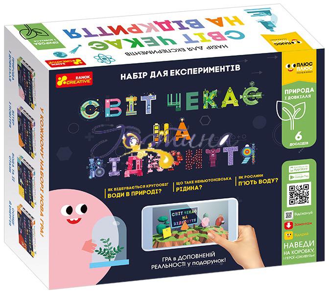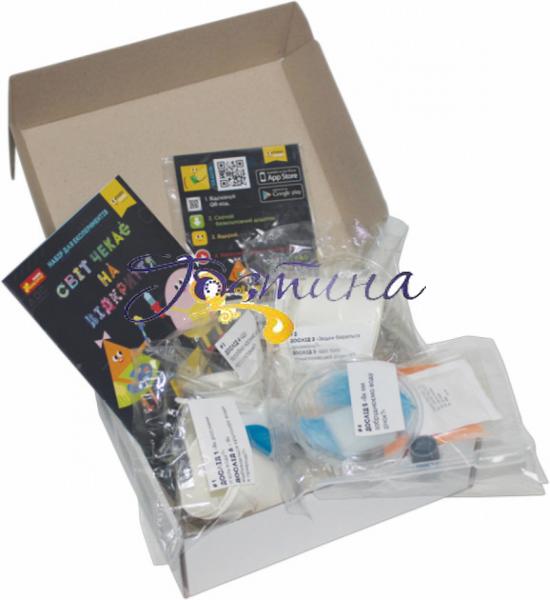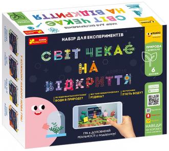 Головна ідея серії «Світ чекає на відкриття» — познайомити дітей з історією різноманітних винаходів і стимулювати малечу до створення власних винаходів. Детальна покрокова інструкція з веселими персонажами мультфільму допоможе провести досліди легко та цікаво! У кожному наборі ви ознайомитеся з 6 історіями винаходів потрібних людству промов та паралельно зможете провести 6 дослідів. Якщо захочеться ще по експериментувати — вам у нагоді стані розділ «Ідеї для дослідження». Розділ «Винахідники вчаться у природи» відкриє дітям велику таємницю — вони дізнаються, що усі винахідники насправді вчаться у природи і саме спостереження допомогло їм зробити багато відкриттів!У комплекті: харчовий барвник, стаканчики, ложка, захисні рукавички, крохмаль, пластикова ємність, пластикова ємність з кришечкою, дерев'яна яна паличка, насіння кукурудзи, чорна гуаш, піпетка, пісок, губка, олія, пір'їна, пакетик із застібкою, мірний стаканчик, фольга, покрокова інструкція. Дізнайся про винаходи:харчовий барвникклейфарбитеплицямікроскопкрапельне зрошення Проведи досліди:Як рослини п'ятому ють воду?Звідки береться крохмаль?Що таке неньютонівська рідина?Що потрібно рослині для проростання?Як ми забруднюємо воду річок?Як відбувається кругообіг води природі?