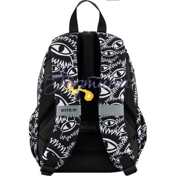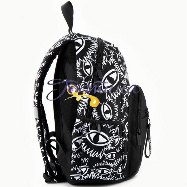 Рюкзак Kite K20-938M-1 виконаний з міцного поліестеру. Патерн у вигляді ока зроблений максимально виразним і абсолютно чарівним! Неможливо відірватися, як в грі-заліпалке. Модель легка і функціональна. Школярі схвалять зручність і максимальний комфорт при пересуванні. Рюкзак Kite зовні: ортопедична вентильована спинка Ergo Teens для дітей середнього і старшого шкільного віку з 'дихаючими' м'якими подушечками повторює анатомічна будова хребта дитини, щільно прилягає до спинилямки з вентильованого сіточкою підтримують правильну поставу і легко регулюються під зріст школяра;2 бічних кишені, куди поміщається пляшечка для води і невеликий термос;щільна м'яка ручка, а також ручка-петля;посилене дно не прогинається під вагою книг, зберігає стійкість рюкзака;світловідбиваючі елементи з усіх боків рюкзака забезпечують безпеку на дорозі в темну пору доби.Рюкзак Kite всередині: 1 основне відділення;2 передніх кишені;знімна ключниця і зручний органайзер для канцелярії і особистих речей;відділення для планшета і ноутбукаМатеріал: поліестер. Зносостійкий, витримує навантаження на розриви. Тканина стійка до вигорання, тривалий час зберігає первинний вигляд і характеристики. Якісна фурнітура забезпечує надійну і плавну роботу замків. Тип: шкільнийСтать жіночаМатеріал: поліестерОбсяг: 11 лРозмір: 37x26x13 смВага: 0,42 кгКолір чорнийБренд: Kite (Німеччина)