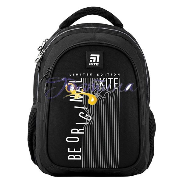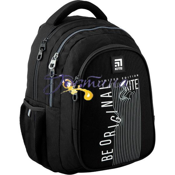 Рюкзак Kite K20-8001M-5 виконаний з міцного поліестеру в однотонному дизайні з життєствердним гаслом Kite 'Be original'. Простота і гаряче улюблений чорний колір сподобаються школярам, ??що цінують комфорт і невимушеність. Модель легка і функціональна. Активні школярі оцінять зручність і легкість, скрупульозні учні - мультифункціональність.