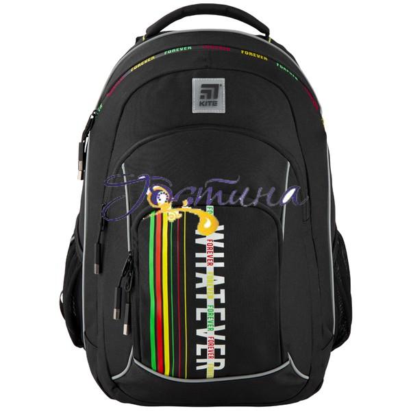 Рюкзак Kite K20-814L-2 виконаний з міцного поліестеру в чорному кольорі з яскравими кольоровими елементами і життєствердною написом 'What ever'. Вона завжди буде нагадувати: що б не трапилося, все буде добре! Модель легка і функціональна. Активні школярі оцінять зручність і легкість, скрупульозні учні - мультифункціональність. Рюкзак Kite зовні: ортопедична спинка Air Comfort для дітей середнього і старшого шкільного віку з 'дихаючими' м'якими подушечками уздовж хребта повторює природний вигин і знижує навантаження на спину;лямки з вентильованого сіточкою підтримують правильну поставу, запобігають дискомфорт в області шиї і плечей;нагрудний знімний ремінь рівномірно розподіляє вагу на всі відділи хребта;2 бічних кишені на гумці, куди поміщається пляшечка для води і невеликий термос;щільна м'яка ручка;посилене дно не прогинається під вагою книг, зберігає стійкість рюкзака;світловідбиваючі елементи з усіх боків рюкзака забезпечують безпеку на дорозі в темну пору доби.Рюкзак Kite всередині: 1 велике основне відділення.2 зовнішні кишені, один - адаптований під розмір пенала або Ланчбокс;зручний органайзер для канцелярії і особистих речей;знімна ключниця;колір підкладки: сірий.Матеріал: поліестер. Зносостійкий, витримує навантаження на розриви. Тканина стійка до вигорання, тривалий час зберігає первинний вигляд і характеристики. Якісна фурнітура забезпечує надійну і плавну роботу замків. Тип: рюкзакПол: дитячийМатеріал: поліестерОбсяг: 27 лРозмір: 44x31x15 смВідділення для гаджетів: немаєКолір чорнийБренд: Kite (Німеччина)