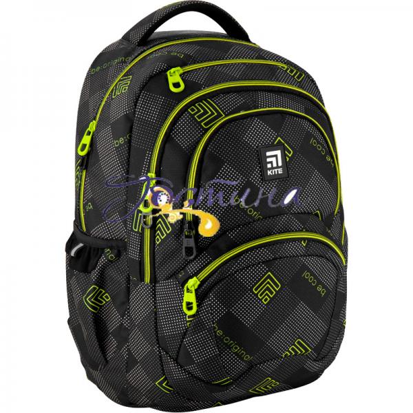 Рюкзак Kite K20-2563L-1 виконаний з міцного поліестеру в чорному кольорі з патерном, яскравими деталями і написами девізу Kite: 'Be cool', 'Be original'. Вдало впишеться в шкільний гардероб і стріт стайл. Модель легка і функціональна. Школярі схвалять зручність і максимальний комфорт при пересуванні.