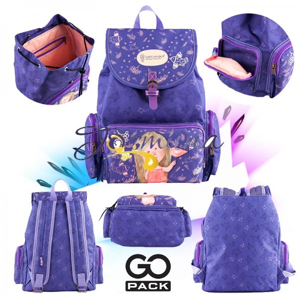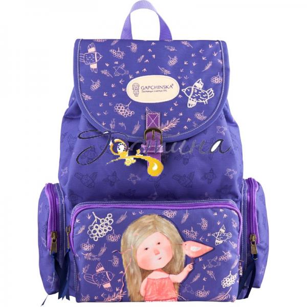 Молодіжний рюкзак Kite GP18-965S-2 виконаний з поліестеру фіолетового кольору з ліцензованим зображенням персонажів картин відомої художниці Євгенії Гапчинської. Рюкзак має кольорову підкладку. Аксесуар складається з просторого відділення, передньої та 2 бічних кишень. Має зручну та надійну ручку-петлю. Рюкзак утягується на шнурі та закривається за допомогою магнітної кнопки, схованої під декоративним ременем. Застібка надійно закріпляє вміст аксесуару. Це стильно, зручно та практично.Щільна спинка, регульовані лямки та невелика вага, всього 300 г, роблять рюкзак комфортним у використанні. Нічого зайвого в дизайні, тільки актуальний дизайн, трендовий принт та естетичний зовнішній вигляд тканини, який зберігається навіть після тривалого активного використання.