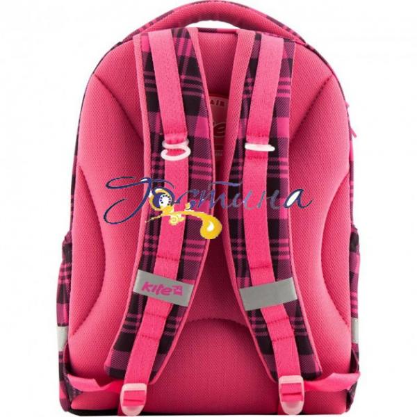 Рюкзак Kite K18-700М-2 з поліестеру рожево-чорного кольору з зображенням сови в окулярах. Виріб має кольорову підкладку. Можна зібрати комплект дизайнерської серії з рюкзака, сумки та пенала. Ортопедична спинка Ergo Kids з 'повітропроникними' подушечками та анатомічними лямками правильної S-подібної форми сприяють щільному приляганню рюкзака до спини дитини, мінімізують тиск на плечі та хребет. Регульовані шлейки та невелика вага, лише 900 г, роблять рюкзак необтяжливим для дитини. Рюкзак містить 2 відділення, передню і 2 бічних кишені. Внутрішні роздільники правильно організовують простір у рюкзаку. Виріб має зручну та м'яку ущільнену ручку. Посилене дно легко миється і зберігає стійкість рюкзака. Світловідбивні елементи забезпечують видимість дитини на дорозі в темну пору доби. Матеріал пройшов складні тести на зносостійкість і розриви, зберігає свої властивості та естетичний зовнішній вигляд тривалий час. Фурнітура якісна, замки легко та плавно відкриваються.