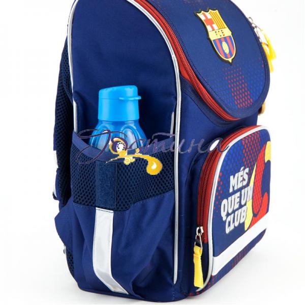 Каркасний рюкзак Kite FC Barcelona BC18-501S для хлопчиків молодшої школи виконаний з міцного поліестеру чорного кольору із зображенням вантажівки. Анатомічна система Ergo Kids з 'дихаючими' подушечками, анатомічні лямки правильної S-подібної форми, нагрудний ремінь сприяють щільному приляганню рюкзака до спини, мінімізують тиск на плечі і хребет дитини, дарують відчуття комфорту і легкості. Регульовані лямки та невелика вага, всього 920 г, роблять рюкзак необтяжливим для дитини.Рюкзак складається з просторого відділення, передньої, внутрішньої та 2 бокових кишень на липучках, куди легко вміщується пляшечка з водою. Внутрішні розділювачі для книг і зошитів дозволяють правильно організувати простір в рюкзаку. На внутрішній стороні кришки рюкзака є спеціальне місце для розкладу.Виріб має зручну ручку-петлю та ергономічну прогумовану ручку, яка не натирає руку, легко дезінфікується. Посилене прогумоване дно легко миється та зберігає стійкість рюкзака.Світловідбиваючі елементи на рюкзаку з усіх боків виробу забезпечують видимість дитини на дорозі в темну пору доби.Рюкзак має надійну фурнітуру, замки-блискавки легко і плавно відкриваються. Завдяки властивостям матеріалів естетичний зовнішній вигляд і функціональність виробу зберігаються навіть після тривалого активного використання. Розмір 34х26х13 Об'єм 11л. Вага 920 г.