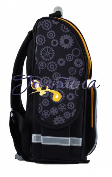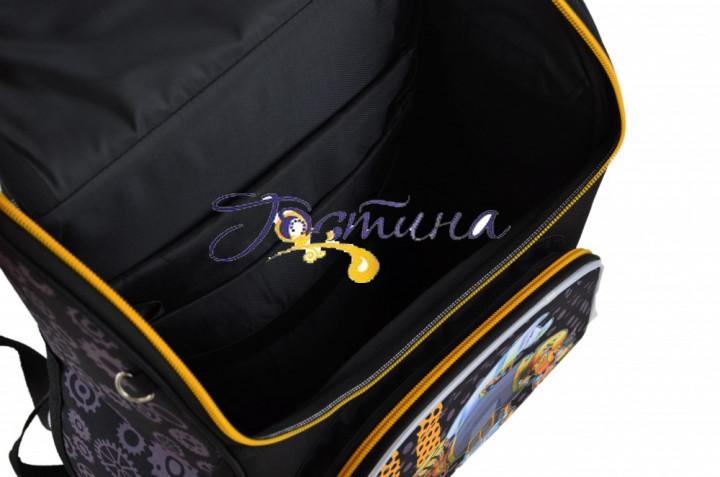 Каркасний шкільний рюкзак з пластиковими вставками, що забезпечують жорсткість спинки і боковин. В основному відділенні є рухливі роздільники з еластичною стрічкою і прозора кишеня для розкладу. На передній панелі об'ємна кишеня. Бічні кишені для води і дрібниць. Широкі (6 см) і зручні S-подібні регульовані лямки. Посилене дно з додатковою пластиковою вставкою. Ранець можна прати в пральній машині. Розмір 260x340x140 мм Об'єм 12л. Вага 950г.