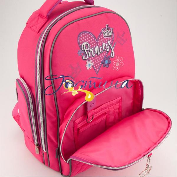 Рюкзак Kite K18-705S-1 з поліестеру рожевого кольору з підвіскою-короною.Ортопедична спинка Ergo Kids з 'дихаючими' подушечками, анатомічні лямки правильної S-подібної форми, нагрудний ремінь щільно прилягає до спини, мінімізує тиск на плечі та хребет дитини. Основне відділення рюкзака має 2 внутрішні кишені, розклад та внутрішні розділювачі з подвійною системою фіксації. Це правильно організовує простір в рюкзаку і зберігає баланс тіла у русі. Рюкзак містить дві бічні кишені на блискавці.Органайзер та знімна ключниця у передній кишені систематизують шкільне приладдя дитини.Рюкзак має м'яку ущільнену ручку та ручку-петлю. Ущільнене прогумоване дно зберігає стійкість рюкзака та легко миється.Світловідбиваючі елементи на рюкзаку забезпечують безпеку дитини на дорозі в темну пору доби.Рюкзак має надійну фурнітуру, замки-блискавки легко і плавно відкриваються. Завдяки властивостям матеріалів естетичний зовнішній вигляд і функціональність виробу зберігаються навіть після тривалого активного використання.